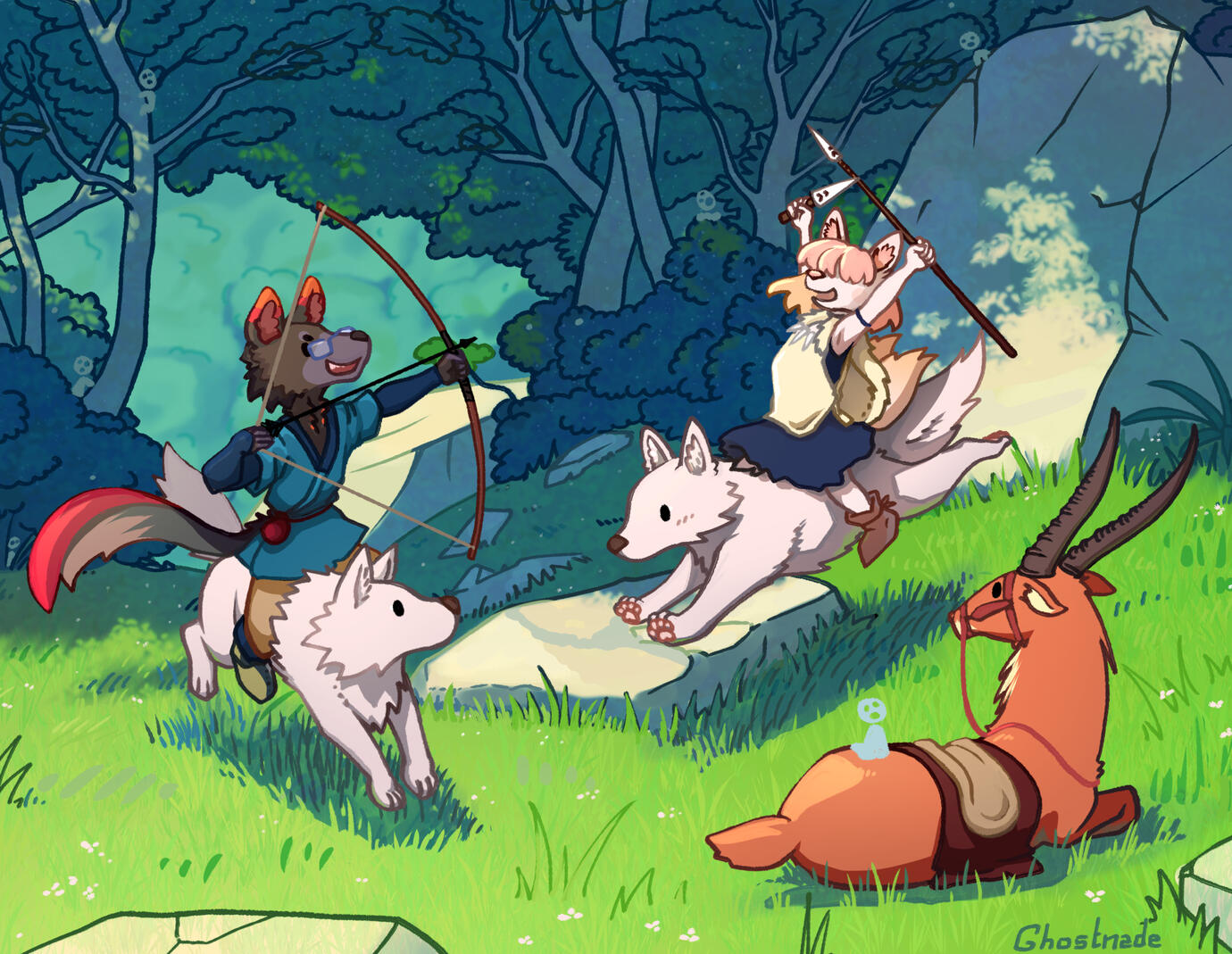 Ocs are simplified, almost cartoonish! Clean lineart, a bit of cell shading and airbrushing!